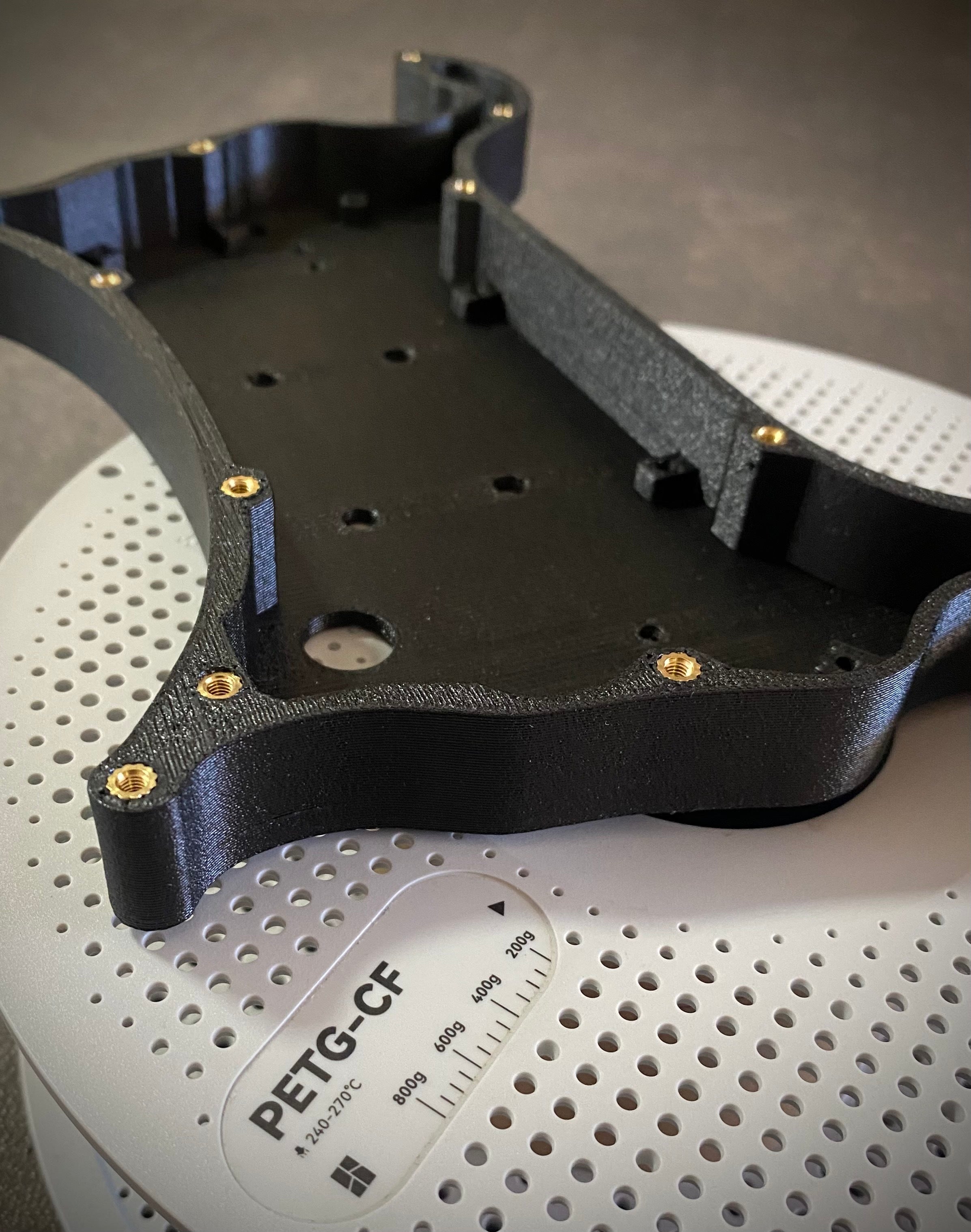 PETG-CF is a carbon fiber reinforced 3D printing filament that offer benefits like near-invisible print lines with enhanced strength, stiffness, and dimensional stability.